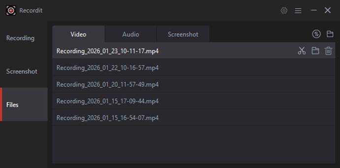 Click Stop when finished. The recorded video will appear in Recordit’s file list for preview.