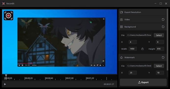 - Built-In Video Editor – Adjust the canvas or video, add backgrounds or watermarks after recording.